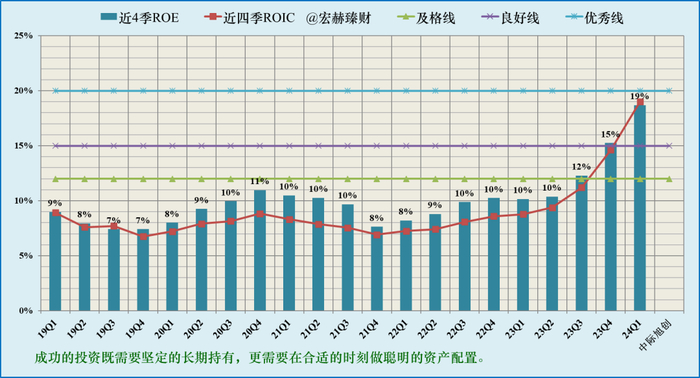 滚动近四季ROE和ROIC走势图