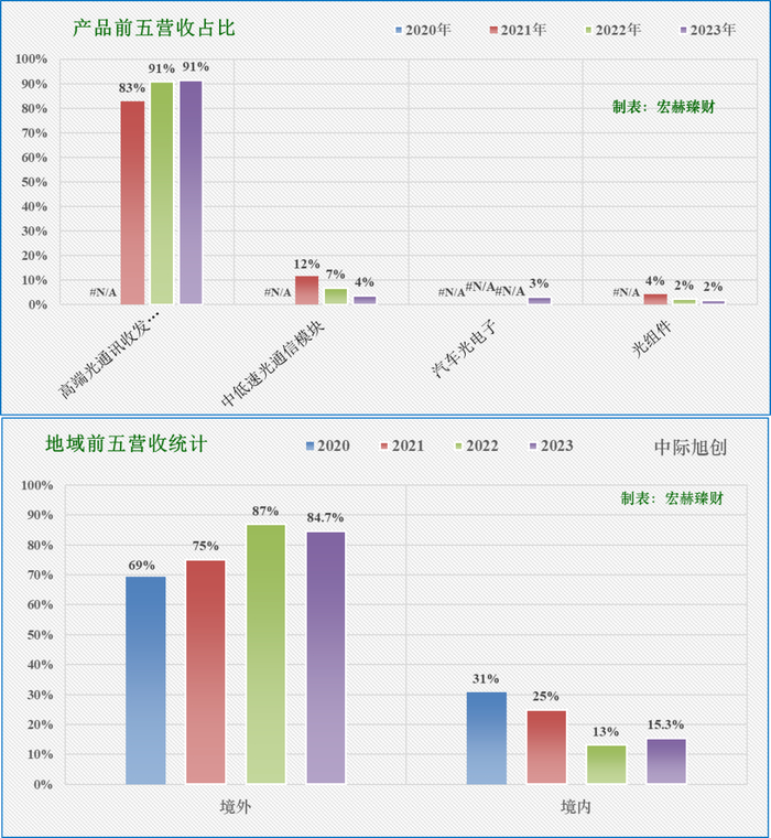 第一主营业务高端光通讯收发模块占营收比权重为91%,近三年同比增幅分别为:--%、31%、12%;当前毛利率35%。
