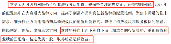 “本基金因时因势对医药子行业进行灵活配置,并保持合理适度均衡,有效控制回撤”;