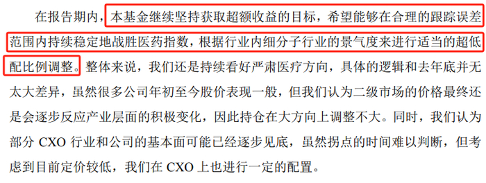 杨桢霄说的比较明确,“希望能在合理的跟踪误差范围内持续稳定地战胜医药指数”。