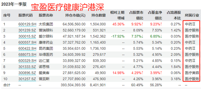 几个主要子行业:化学制药、医疗器械、中药、医药商业,均有仓位。