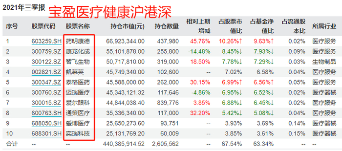 2021年三季度,他重仓高景气的CXO、医疗器械。而且仓位颇高,十大重仓股集中度超过60%。