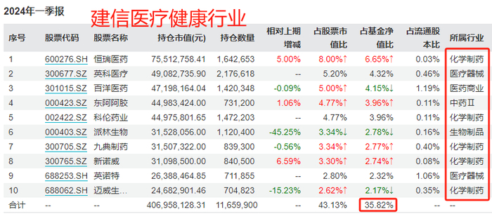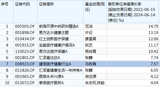 建信医疗健康行业涨了7.57%,在医药基金中排名第7。
