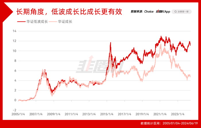 从2005年有数据以来的回测看低波成长在连续创新高能力和回撤体验上远远优于纯粹的成长指数。
