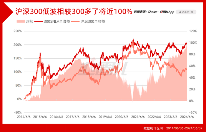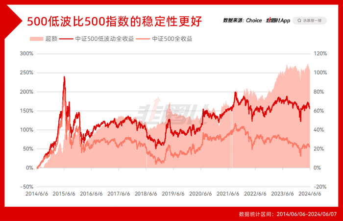 不信可以可以看,中证500低波全收益相较中证500全收益的10年累计超额达到102%,中证1000低波全收益相较1000全收益,超额收益达135%。
