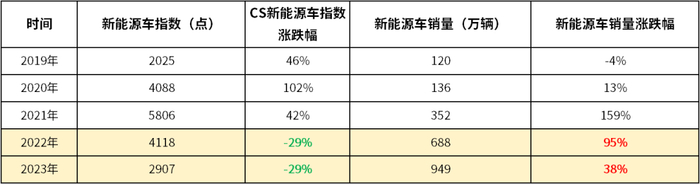 3)2021年,新能源车指数年度涨幅42%。2021年新能源车销量迎来爆发式增长,新能源车指数也是水涨船高,当年继续大涨。
