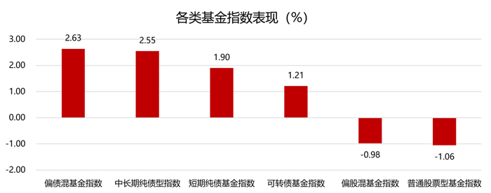 Wind,截至2024/6/19。偏债混基金指数取885003.WI,中长期纯债基金指数取885008.WI,短期纯债基金指数取885062.WI,可转债基金指数取885077.WI,偏股混基金指数取885001.WI,普通股票基金指数取885000.WI。指数过往走势不代表未来表现,不构成对基金业绩的保证。