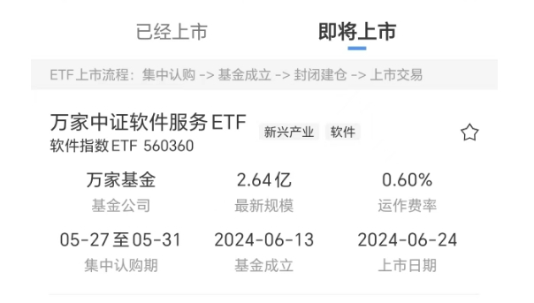 下周,万家软件指数ETF560360)上市,指数产品的详细情况可以在(ETF组合宝)中查看: