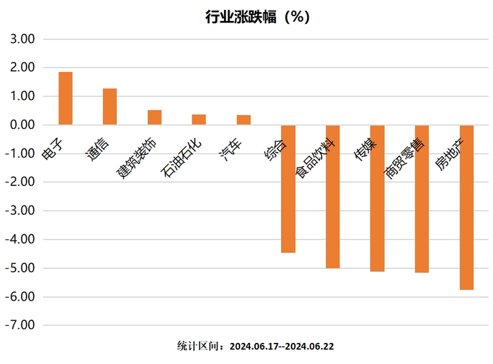 就拿这周来讲,上证指数跌的多不吧,实际个股表现根本没法看,以申万一级行业为例,32个行业仅电子、通信等5个子行业小幅收红,其余27个行业全线下跌,大面的板块也不在少数,详细数据大伙看下图: