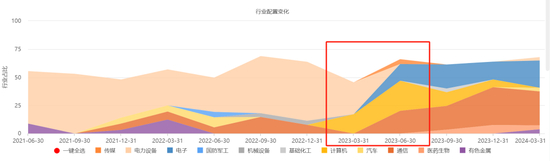 以其代表作宏利转型机遇为例,在23年上半年,就对电子、计算机等行业进行了大幅加仓。