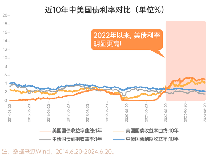 美元债发行时的利率参考美国的市场利率,而国内债的发行利率则是参考国内的市场利率。不同的利率水平,决定了不同的票息收益水平。对投资者来说,债券的利率水平高,意味着可获得的票息收益率更高,当然也更具吸引力。