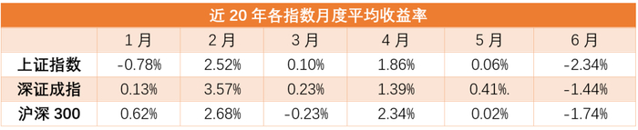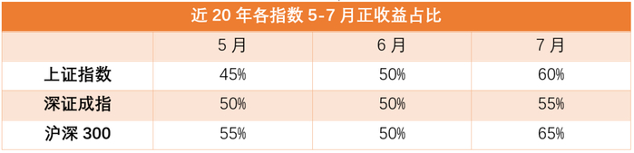而我们分析各指数近20年的表现也能发现,7月的平均收益率明显高于5、6月。