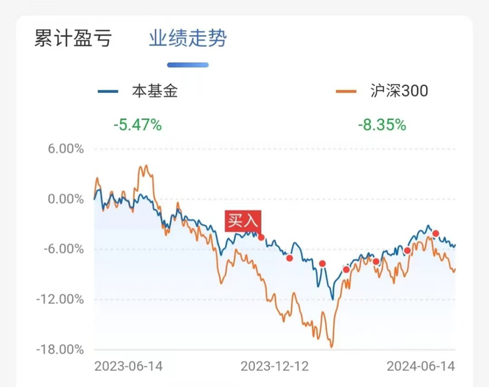 在她的定投期间,股市处于下行期,产品也处于净值低位。数据显示,2023年下半年,沪深300指数持续下行,最大回撤达18%,很多人都处于观望状态,不敢进行投资(数据来源:wind)。