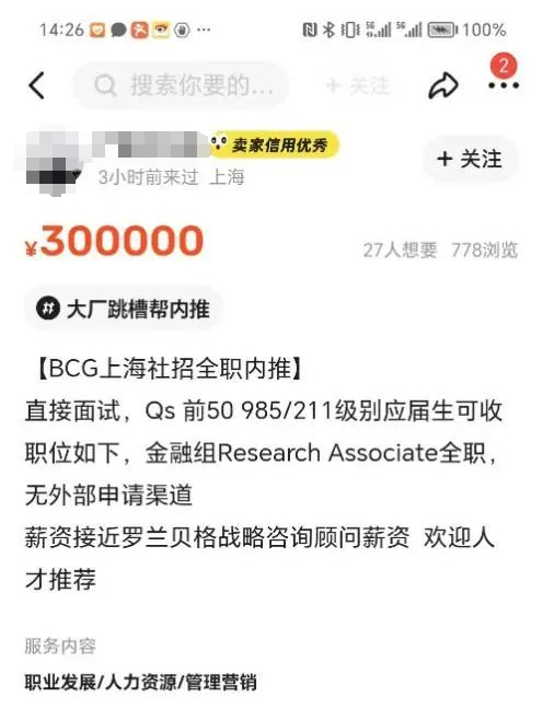 近日,八妹从某二手平台看到一则帖子,一个心仪的金融圈岗位,背后竟需支付高达30万的“推荐费”。这不禁让人感叹,金融圈果然玩的是“高端局”。