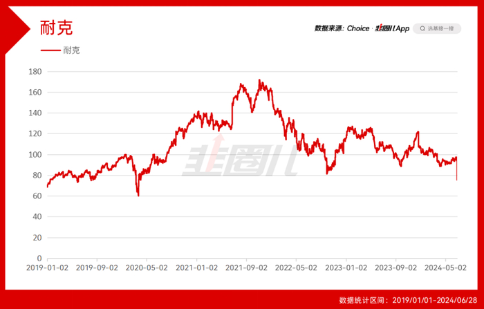 周五耐克季报不及预期下调了全年业绩指引,预计本季度销售额将下降10%,股价立即暴跌20%。