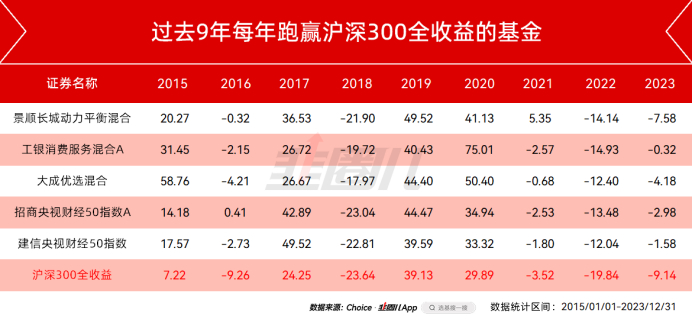 从2015-2023完整9年里,能战胜沪深300全收益的基金只有这几只——