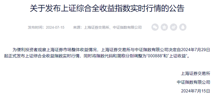 这次的公告,只是说接下来要计算上证指数全收益的实时行情了。