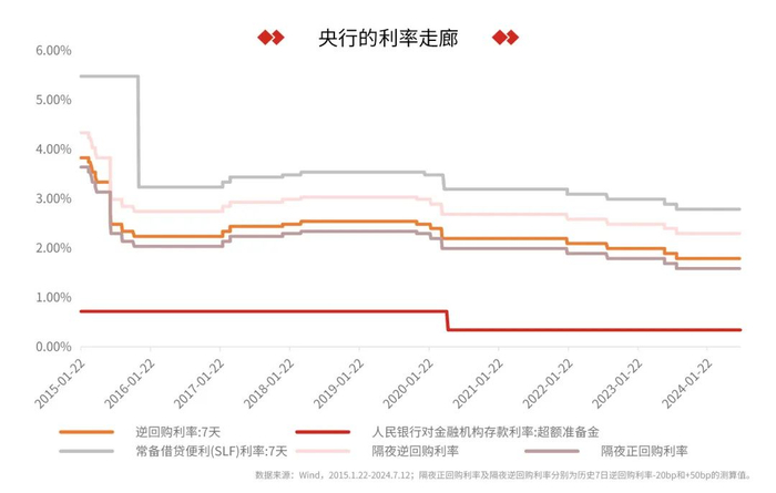 2024年6月19日,央行行长潘功胜在陆家嘴论坛上指出,7天期逆回购操作利率目前已基本承担起作为主要政策利率的功能。同时,我国的利率走廊已初步成形,总体上宽度较大,如果未来考虑更大程度发挥利率调控作用,除了需要明确主要政策利率以外,可能还需要配合适度收窄利率走廊的宽度。