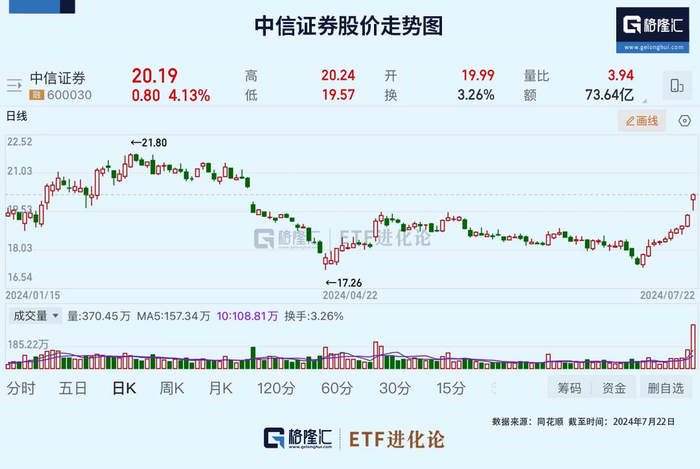 周末,中信证券登上热股榜第一。今天在权重股下跌中,中信证券突发大涨。