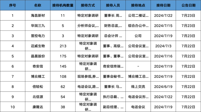 重点机构:富国基金、交银施罗德、兴证全球、易方达基金、中庚基金、中欧基金、嘉实基金、华夏基金、泓德基金、景顺长城、汇添富基金