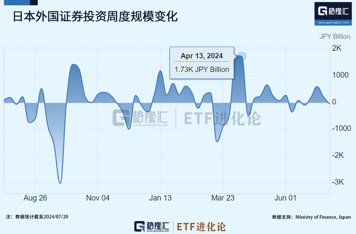 仔细看下图,美股4月回调之际,日股同期也遭遇外资的流入规模的不断缩减,如今7月也出现了类似的小型“波峰”。