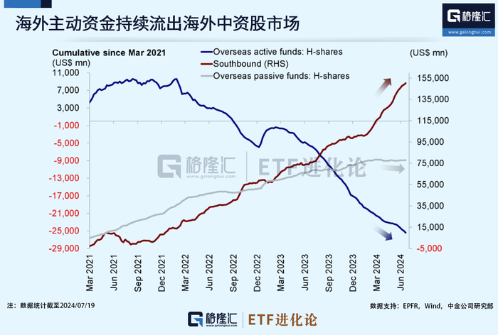 中金证券援引EPFR的数据显示,上周海外主动型基金继续流出海外中资股市场,流出规模约为4.3亿美元。同时,海外被动型资金同样转为流出,规模为1.2亿美元。