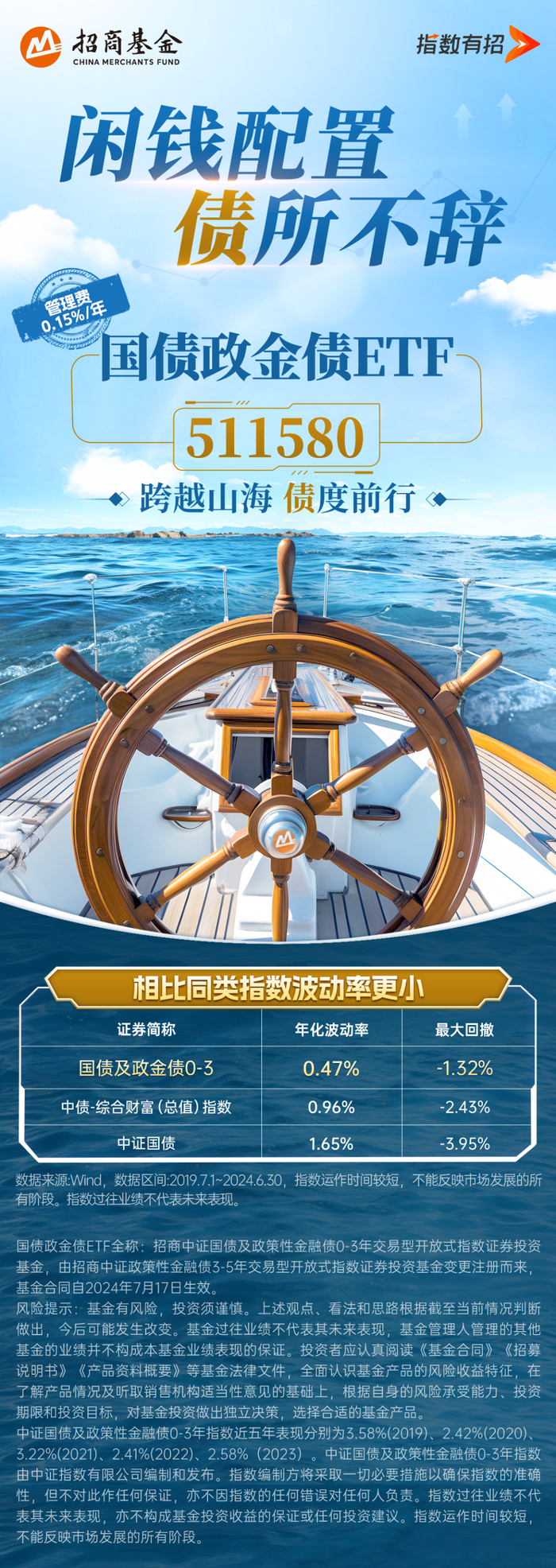 7月24日,根据招商基金公告,旗下国债政金债ETF(511580)于当日复牌,恢复交易、申购及赎回业务。据了解,该ETF由原政金债5年ETF转型而来,复制跟踪中证国债及政策性金融债 0-3 年指数,助力场内投资者闲钱管理。