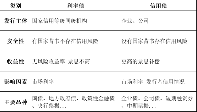 利率债的利率通常较低,违约风险较小,信用债通常会提供更高的利率以补偿投资者承担的更高信用风险。