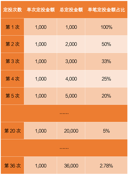 定投钝化效应,是指随着定投期数越来越多,会出现平均投资成本“钝化”的现象,使定投失去“在市场波动中摊低单位成本”的优势。