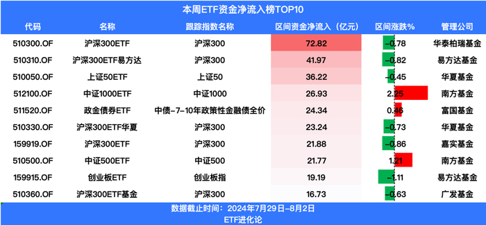 比较罕见的是,南方基金中证1000ETF本周大幅净流入26.93亿元。南方基金中证500ETF净流入21.77亿元。