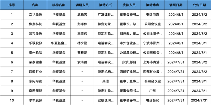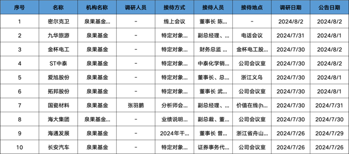 泉果、华夏基金两大明星机构近日调研汇总!
