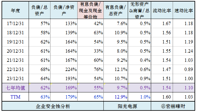 结合公司业务和商业模式,分别从七年均值和去年末值来观察该公司的资产安全性和资金流动性。