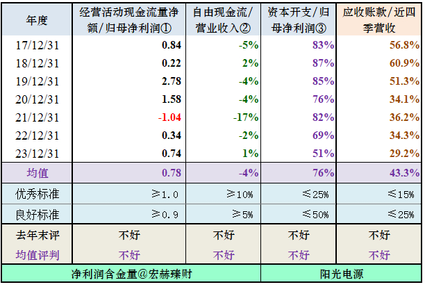 阳光电源 该指标23Q3走入优秀区间。