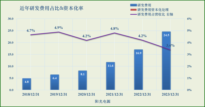 2023年末研发费用24.5亿,占营收比3.4%。