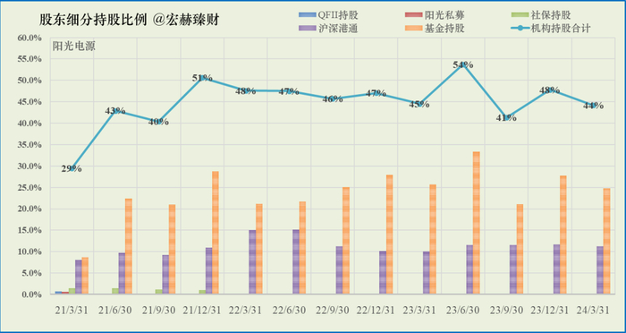 最新季度机构持股占比为【44%】;近三年机构持股占比均值为46%