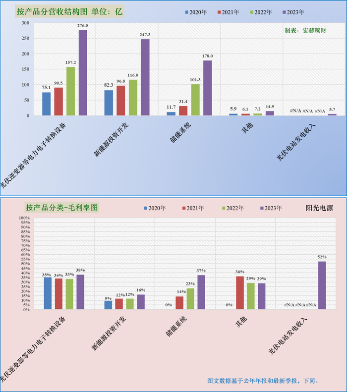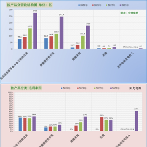 第一分类业务光伏逆变器营收277亿,权重为38%,近三年同比增幅分别为:20%、74%、76%;当前毛利率38%。