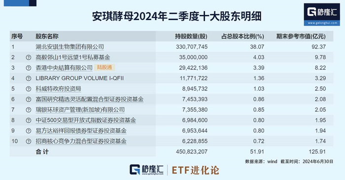 私募大佬冯柳管理的高毅邻山1号远望基金二季度大举增持2650万股安琪酵母,持股比例由一季度末的0.98%增至4.03%,跻身第二大股东。