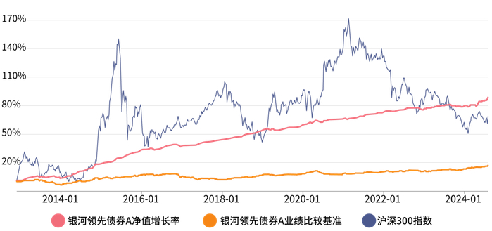 银河领先债券数据来源:产品定期报告;万得中长期纯债型基金指数数据来源:Wind。银河领先债券A最近五个会计年度业绩详见上文银河领先债券A业绩表格及备注。