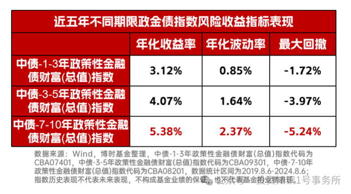 再者,目前市场上有专门投资于政金债的指数型公募产品,对政金债中短期限、中长期限、长期限等多期限品种都有覆盖,适合想要聚焦政金债、同时可以根据资产情况和市场判断配置不同期限产品的投资者。