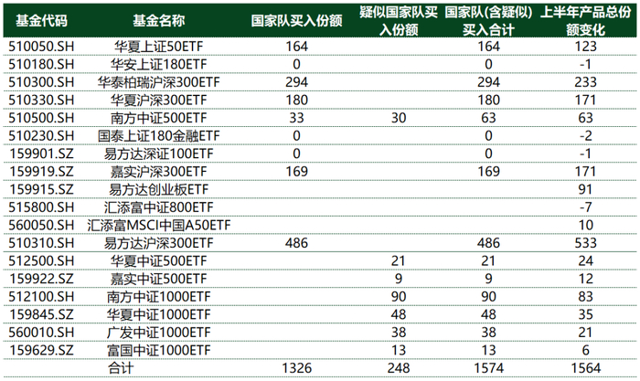 疑似国家队资金在今年上半年的ETF增持情况
