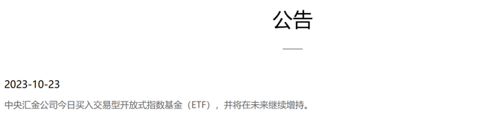 以中央汇金为代表的“国家队”在进行投资操作时并不藏着掖着,行事光明磊落,会事前或者事后进行官宣,我理解这也是管理市场预期的一种手段。比如像去年10月23日,中央汇金在官网挂出了这一则简单的通告: