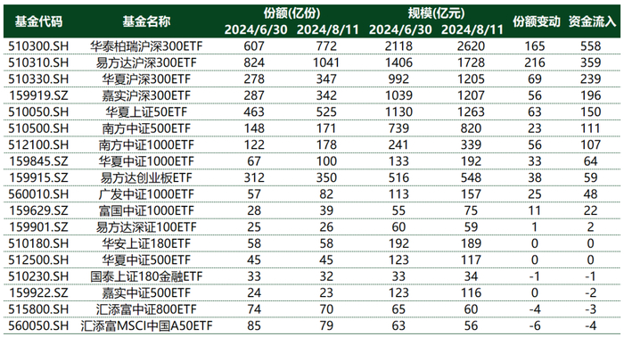 7月以来重点ETF的份额变化及资金流入情况