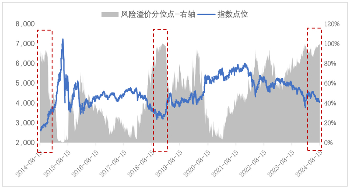 图:近十年Wind全A指数点位及风险溢价分位