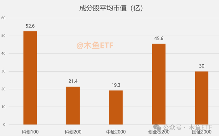 给主要指数用成分股平均市值排一下,就可以看到科创200的位置,是市场“第二小”的指数。这里多说一句,我们可能很难想象,中证500的平均市值已经跌到了110亿,差不多就是过去中证1000的水平。