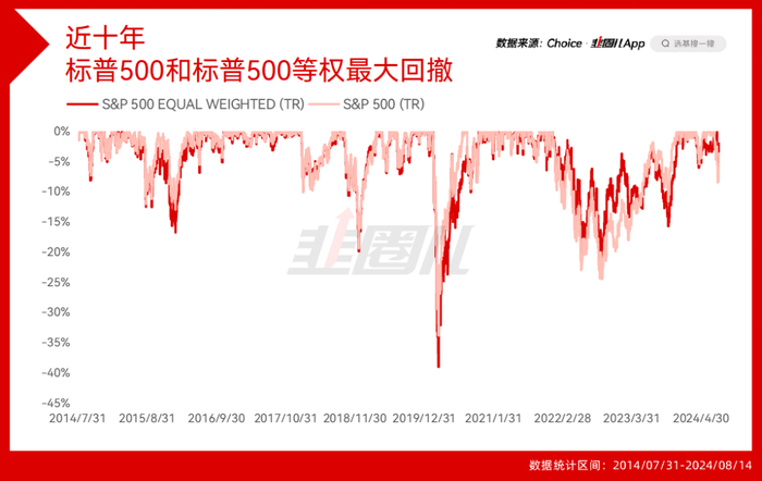 2023年至2024年8月14日,标普500比标普500EWI多涨了23%,可见一斑。