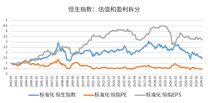 复盘过去近20年数据,2002年至今历史上港股的四轮上涨中有三轮明确对应了中国内地经济的上行:2003年至2007年,中国加入WTO后经济高速发展;2016年至2018年,经济周期性修复;2020年至2021年,经济复苏。