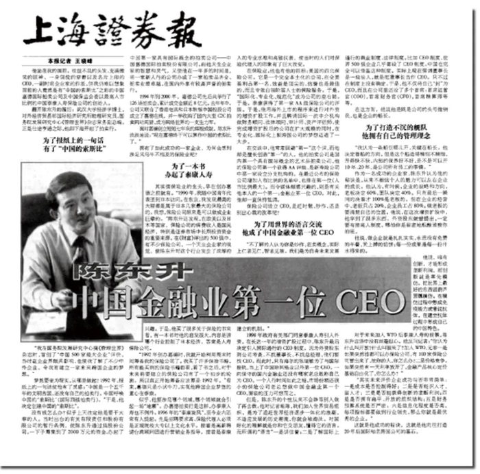一个偶然的机会,我听陆今迈说中国化工进出口公司、中国粮油进出口公司、中国远洋运输公司、中信银行等四家国企正在谋划筹建一家联合保险公司,做财险业务。中国人民银行说国家鼓励寿险发展,建议它们做人寿保险,但它们说对寿险不熟,最终还是选择了财险。我一听心就活了:这么好的机会,你们不做,我来做。当天晚上,我一夜无眠,第二天跑到王府井新华书店,把所有关于保险的书都买了回来,高高的一摞,自己感觉这个寿险公司已经存在了。