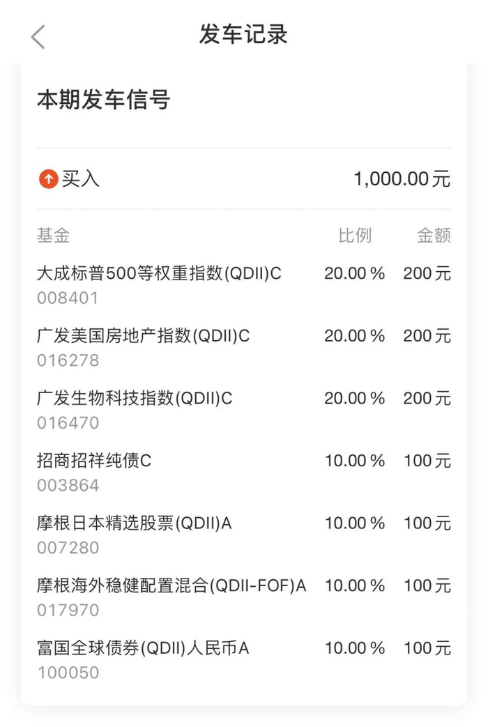 如果你希望将每月的现金流拿一部分出来做投资,比如每月投入2000元,按照组合每周一次发车来算,每一期设定的跟投金额可以是2000÷4(周)=500元。