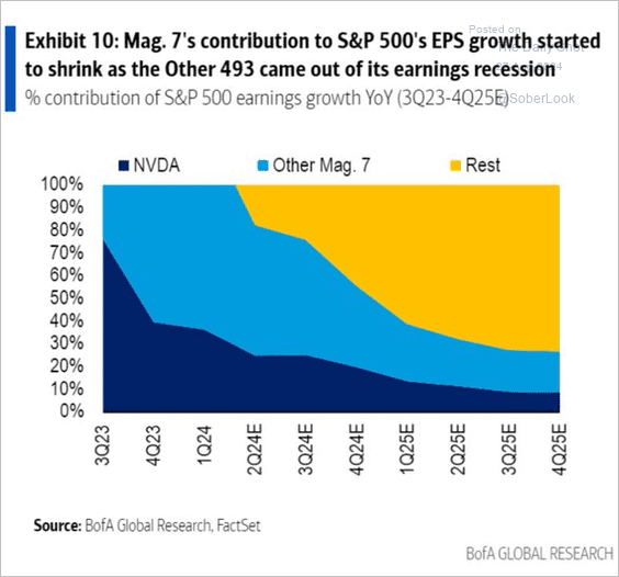“七巨头”对标普500指数每股收益增长的贡献开始缩小,因为“其他493家”公司走出了盈利衰退。
