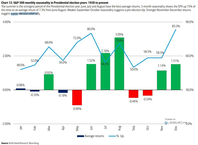 尤其是在选举年,9月和10月很容易遭遇回撤(1928年来的统计数据)。